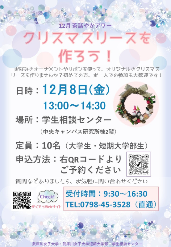 学生相談センター TEL:0798-45-3528(受付時間:9:30~16:30)