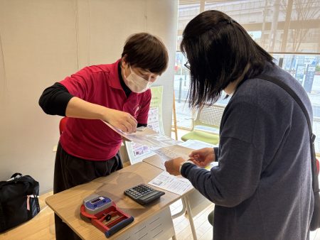 当日は、骨の健康チェック・血管年齢測定・血圧測定・健康相談に加え、今回から、全身の筋肉や健康状態を示す重要なバロメーターである、握力測定も実施しました。