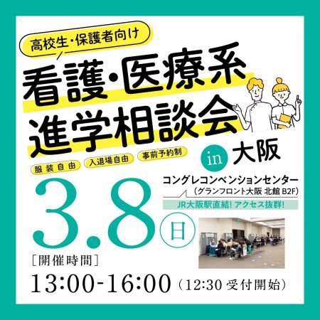 - 看護学部の教員と話せるチャンス!3/8(日) 進学相談会のお知らせ@グランフロント大阪