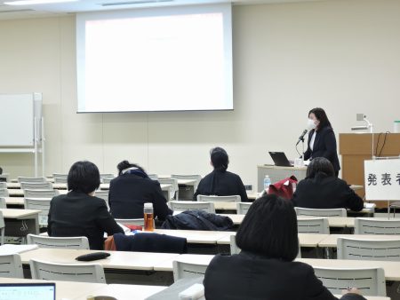 それぞれの研究テーマは、入学当初から研究計画を丁寧に練り上げ、地道なデータ収集・分析を重ね、論文としてまとめ上げるまでの長い道のりを経て完成したものだと思います。限られた発表時間の中で、これまでの研究成果をどのように整理し、分かりやすく伝えるかは大変だったことと思いますが、いずれの発表も要点が的確にまとめられていました。