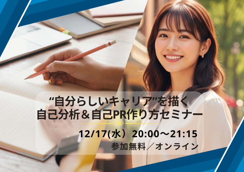 12/17(水)20:00~【参加無料】自己分析&自己PR作り方のオンラインセミナー開催!