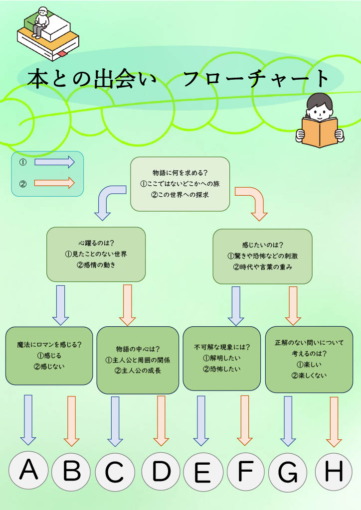 普段本を読まない人もいつもと違う本を読みたい人もこのフローチャートで新たな出会いをしてみてください!